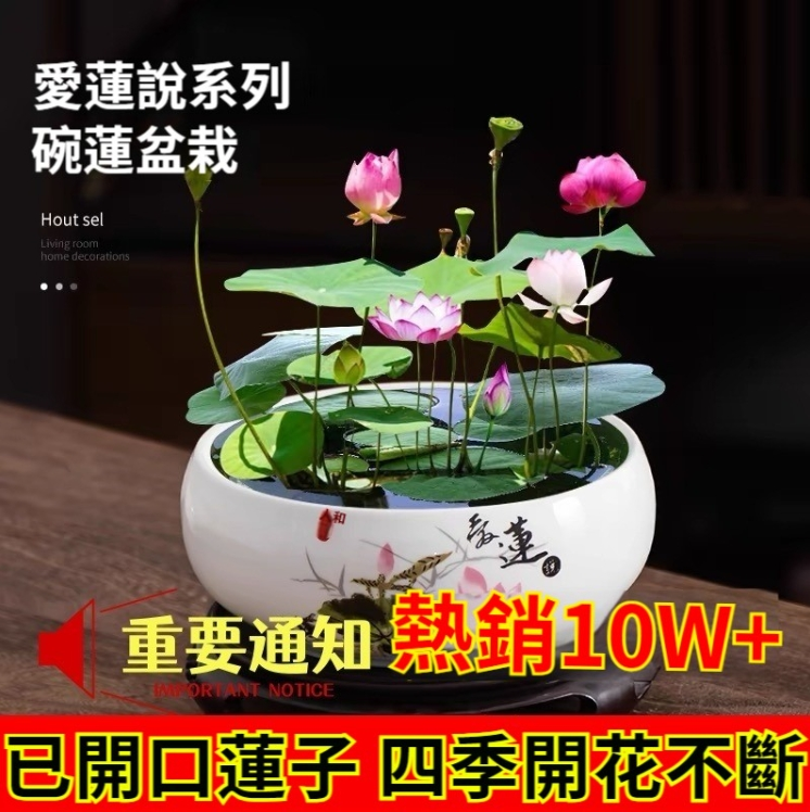15分鐘前『招財轉運』水培碗蓮 - ★★★店主推薦【50粒+碗蓮專用營養液2+養殖盆】【綠葉+莊根+促芽+催花】,開爆了!僅需NT$800